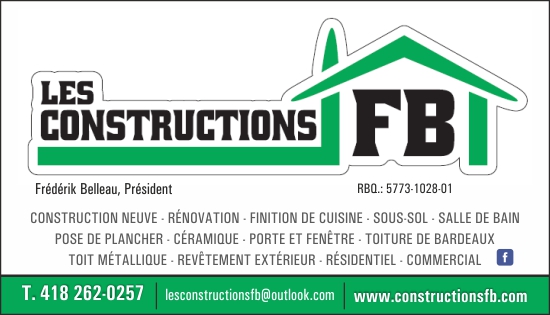 CONSTRUCTIONS FB 2019 INC | Hébergement et Réalisation : Optilog Informatique inc. | Construction411.com